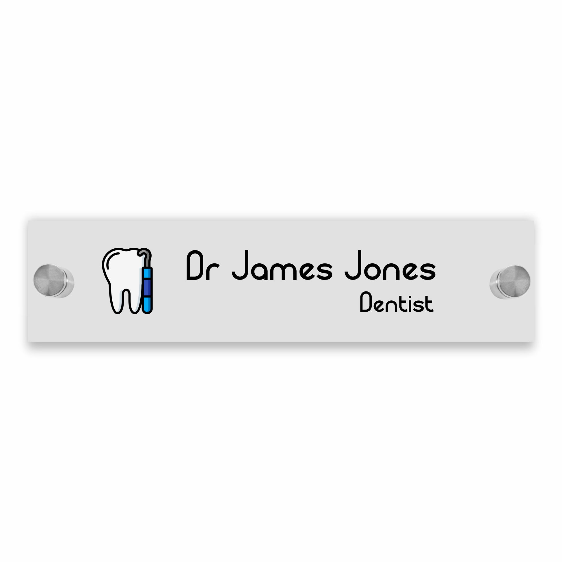 Enhance your office or home with the sleek and sophisticated 250 x 60mm clear acrylic custom door sign. Crafted from high-quality, 5mm thick acrylic, this sign features polished edges that exude modern elegance. The transparency adds a touch of class to any space while ensuring the sign seamlessly blends with your decor. One of the standout features of this door sign is the reverse side printing. This technique not only enhances the visual appeal but also ensures durability, keeping your personalised wording or logo looking sharp and professional over time. Say goodbye to peeling or fading messages, and hello to a long-lasting display Installation is a breeze with the included satin silver stand-offs and screws. These fittings not only provide a secure mount but also add a stylish, floating effect that makes the sign easily readable and eye-catching. Whether you want to highlight an office title, a room name, or a personal space, this sign delivers both elegance and functionality. Perfect for businesses, home offices, or any setting requiring clear identification, this customisable sign is designed to meet your specific needs. Add a unique touch to your environment with a high-quality, professional door sign that speaks volumes about your style and attention to detail.