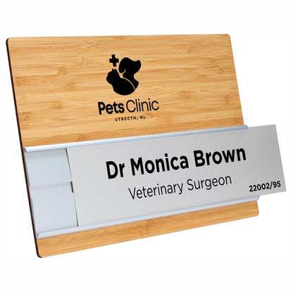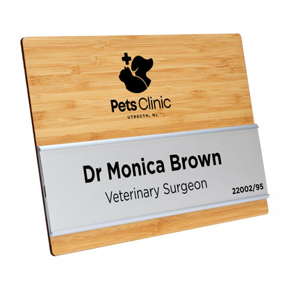 Bamboo + Changeable Aluminium Custom Office Sign - 300 x 200mm