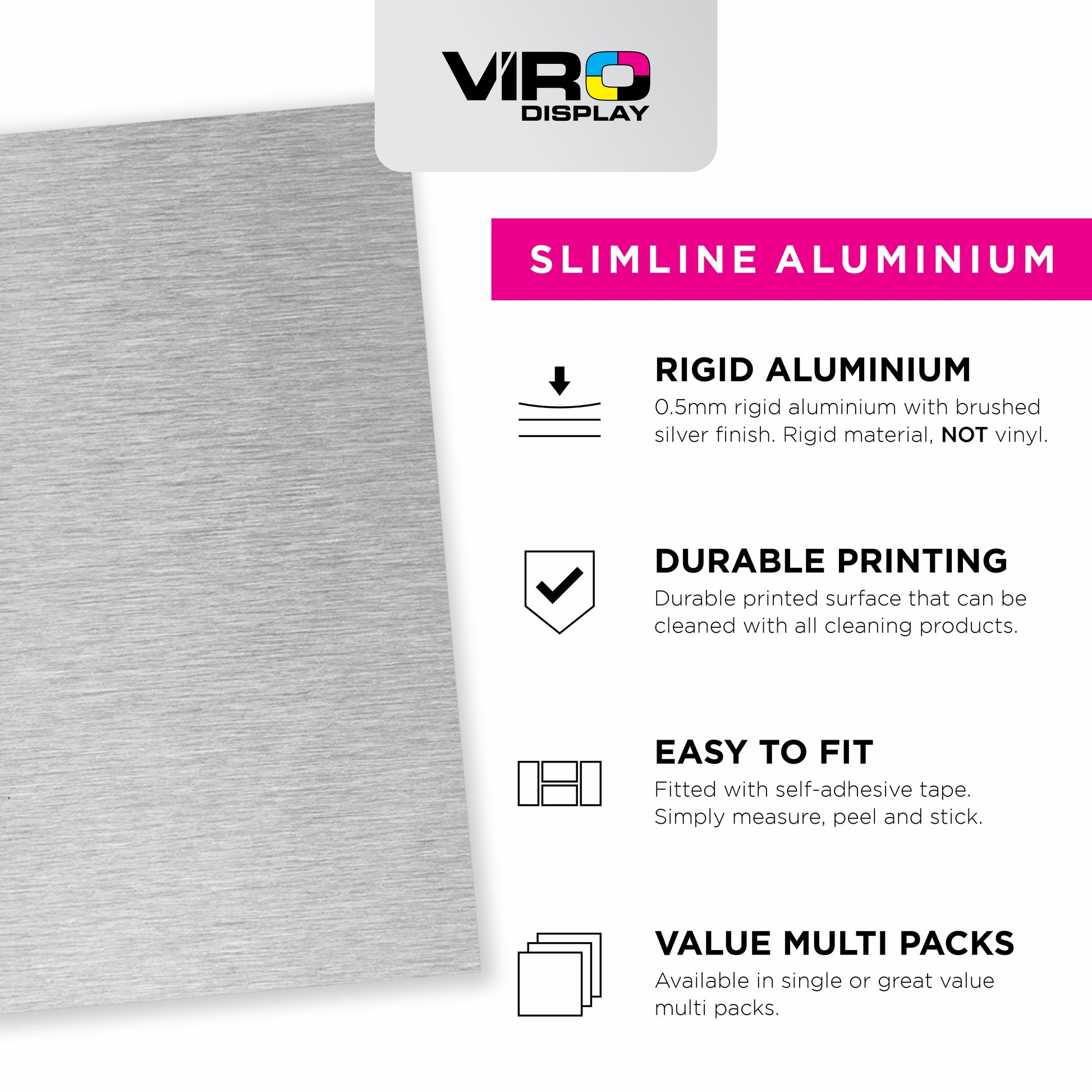 Slimline aluminium baby change sign made by Viro Display®  | Size: 100 x 100mm. Made from 0.5mm rigid aluminium with a durable printed surface which will not rub-off. Easy to wipe clean and can be used with all cleaning products. Our slimline aluminium signs are made from rigid aluminium and not low-cost vinyl. They are perfect for interior use in offices, reception areas and surgeries. Fitted with self-adhesive tape for quick and easy fitting. Simply measure, peel and stick. Available in single or great value multi packs.